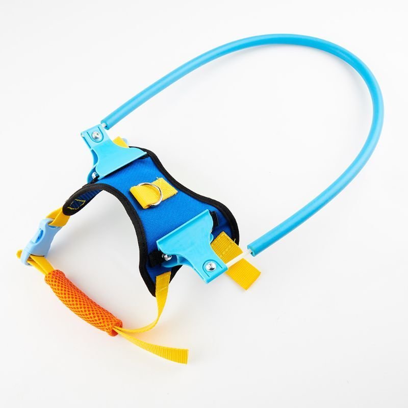 Dit product is als het ware een hondentuigje met daarop de anti stoot ring gemonteerd. Op het tuigje zit ook een ring waar u uw hondenriem aan kunt bevestigen. Zo kunt u makkelijk over straat met uw hond.