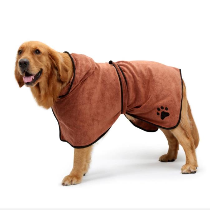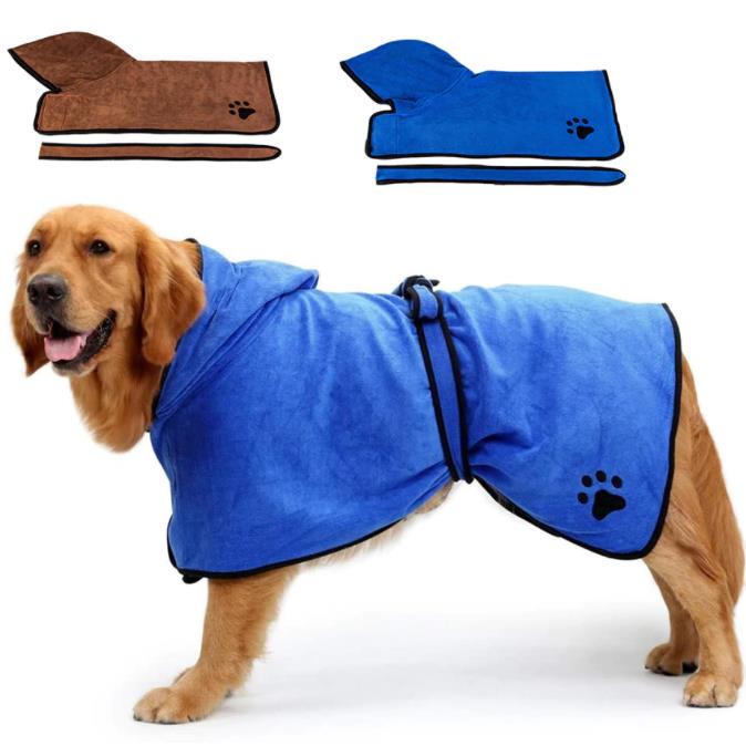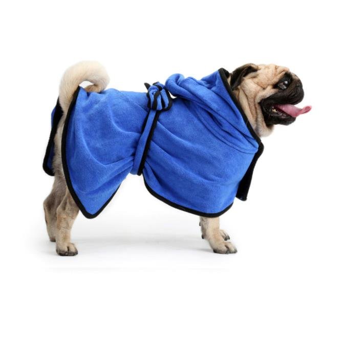 Badjas voor honden en katten. Zorgt ervoor dat uw huisdier nadat hij in bad is geweest, of met regenachtig weer nat is geworden, of heeft gezwommen, snel opdroogt en opwarmt.