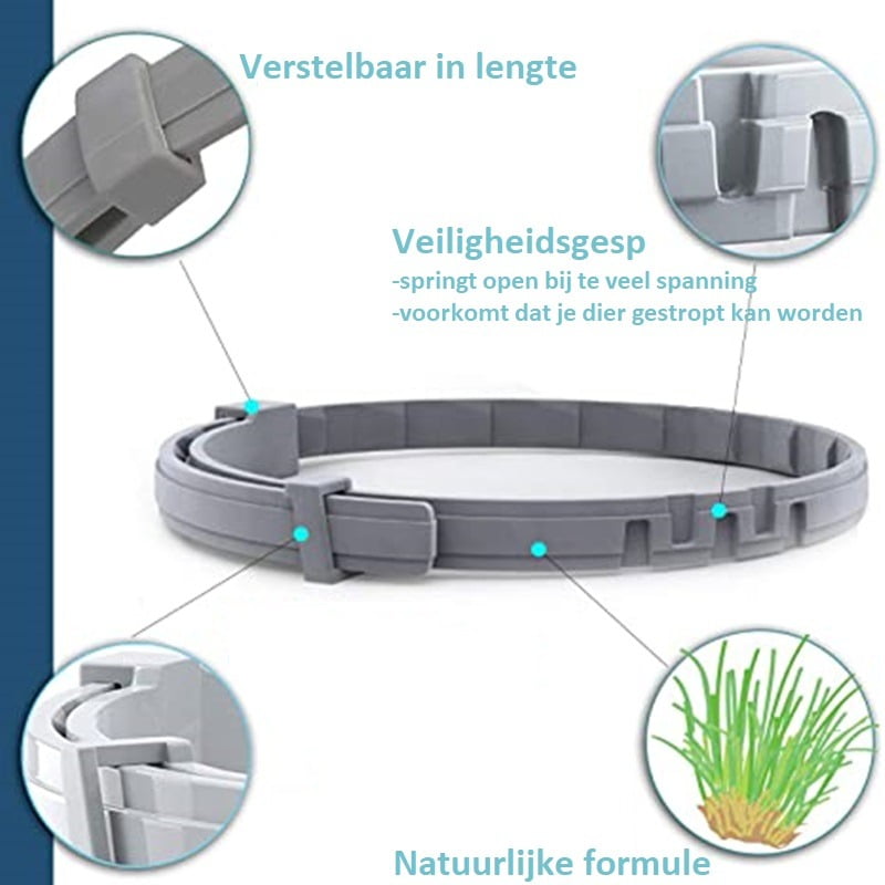 De halsband biedt 8 maanden bescherming. Doodt ongewenste insecten en voorkomt dat uw dier nieuwe insecten aantrekt.
