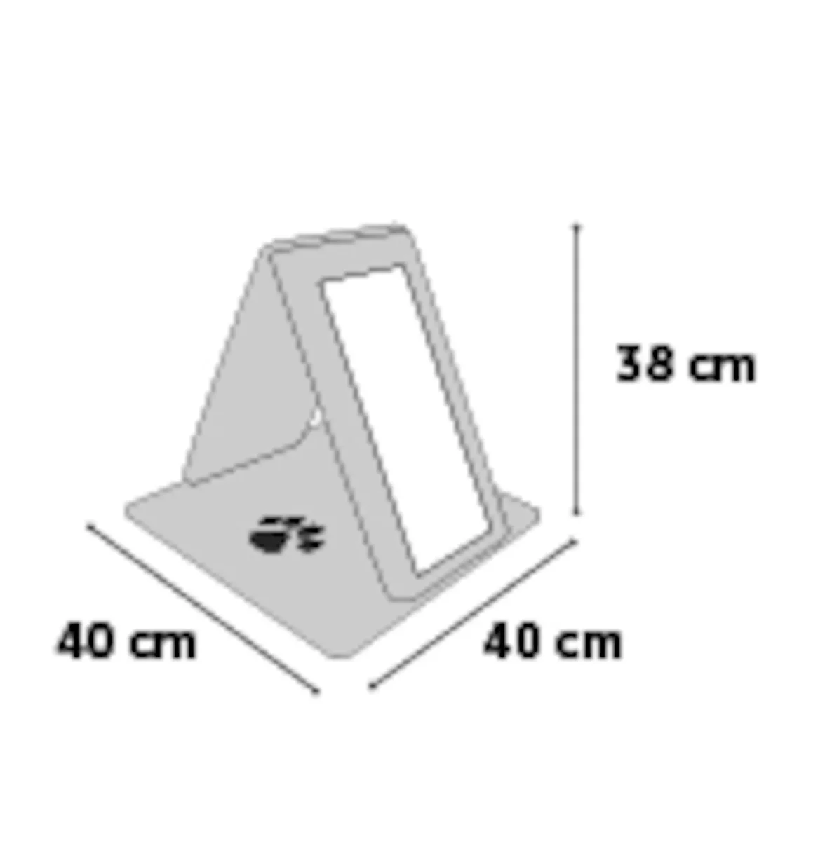 Krabplank in de vorm van een driehoek die bestaat uit zachte pluche en zijwanden van sisal waar uw kat uitvoerig aan kan krabben. Het speeltje is een leuk extraatje. Materiaal: sisal, MDF krabplank met sisal krabmat, Dikte bodemplaat: 1,2 cm, Afgewerkt met zachte pluche (200 g/m²), Met speeltje voor extra speelplezier