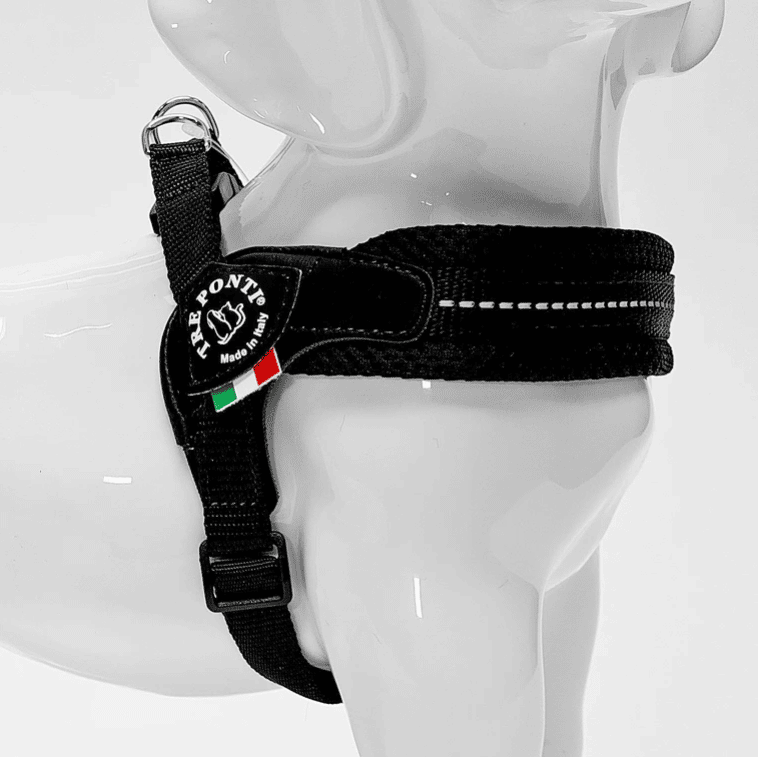 Tre Ponti tuigen bieden uw hond veel voordelen. Van expliciet belang is dat de maat en de pasvorm correct is. Zoals alle Tre Ponti tuigen blijven de oksels vrij, valt het tuig boven de schouders en duwt het tuig nergens op negatieve drukpunten.