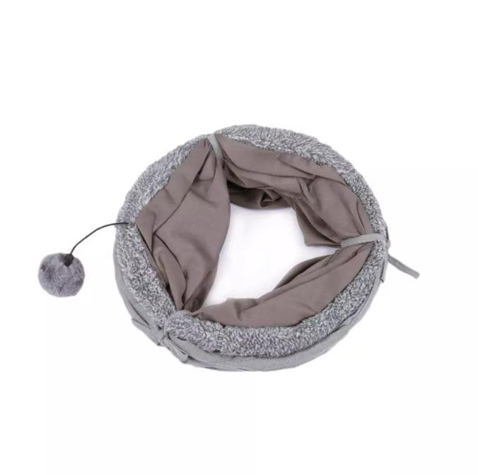 Speeltunnel voor katten. De tunnel is 27cm in diameter en 117cm lang. De tunnel is opvouwbaar waardoor hij makkelijk is mee te nemen en weinig ruimte in beslag neemt voor opslag. De bruine, grijze, en blauwe variant zijn van polyester gemaakt. Suede grijs is zoals de naam al zegt van suede gemaakt.