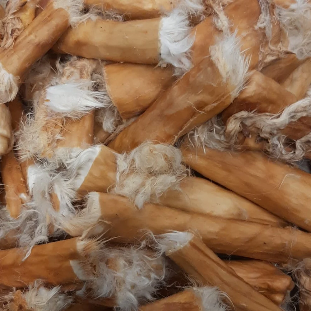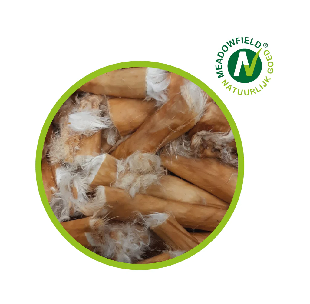 Een kauwsnack waar echt de meeste honden voor in de rij gaan staan! De vacht in combinatie met de huid heeft een reinigende werking voor zowel het gebit als de darmen. Dus kauwen met een PLUS! Goed voor de spijsvertering en goed voor het gebit.