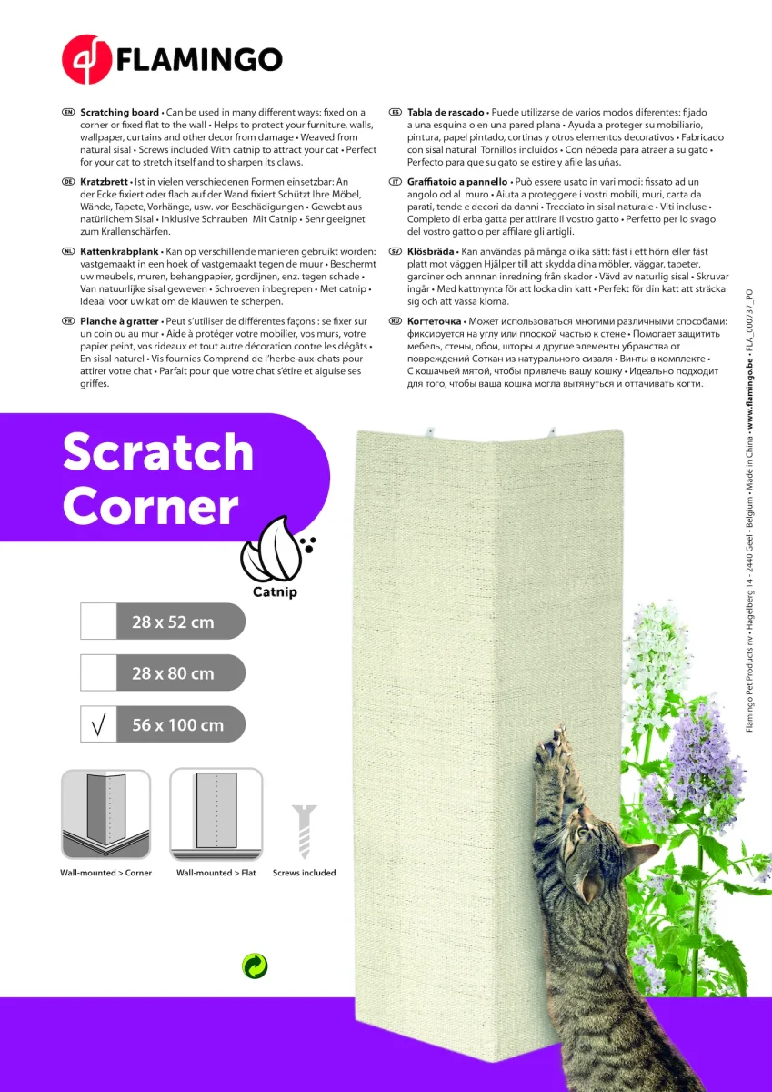Met de krabplank sisal voor hoeken kunt u een hoek van uw huis benutten als krabgelegenheid voor de kat. Ideaal als je kleiner woont en geen ruimte hebt voor een grotere krabpaal en toch de kat de mogelijkheid wilt bieden om te krabben. Door het kattenkruid dat erin zit, wordt het extra aantrekkelijk gemaakt voor uw kat om aan te krabben. Materiaal: sisal, Krabplank met sisal krabmat, Met catnip, Dit hoekmodel kan tegen de muur gemonteerd worden met de bijgevoegde schroeven en pluggen
