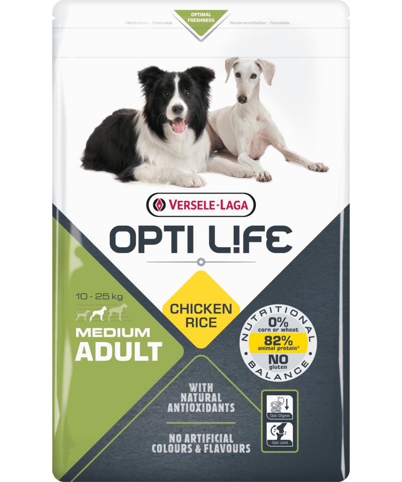 Evenwichtige hondenvoeding – kip – middelgroot ras Opti Life Adult Medium is een perfect nutritioneel uitgebalanceerde formule voor middelgrote rassen (10-25 kg), op basis van kip & rijst, speciaal ontwikkeld om jouw hond in optimale conditie te brengen en te houden.