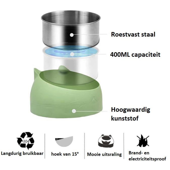 Het verhoogde design en de hoek van 15° van deze voerbak, zorgen ervoor dat uw dier zijn normale postuur kan behouden, waardoor u overtijd klachten aan zijn nek en wervelkolom voorkomt.