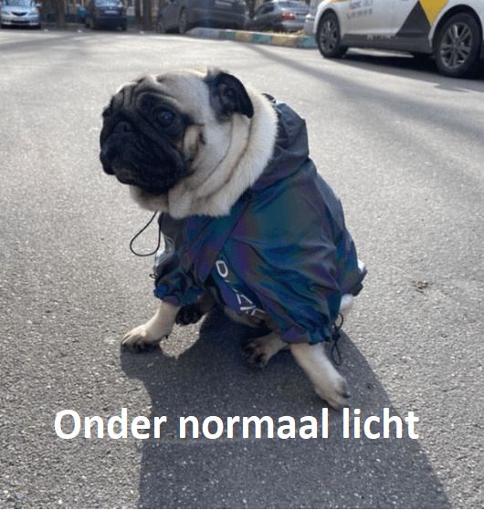 Let op: De jas gaat onder felle belichting pas het effect weergeven zoals op de productafbeelding