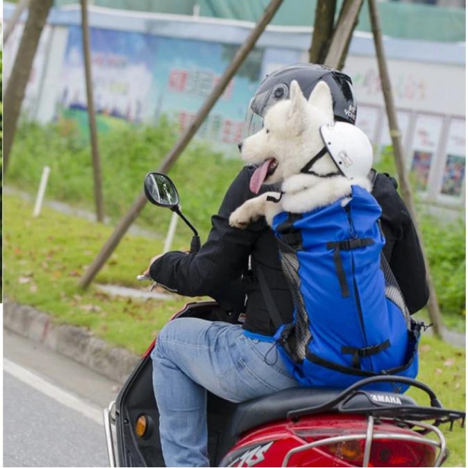 Rugzak voor grote honden (maar ook voor kleine honden). De ideale rugzak voor wie zijn of haar kleine/middelgrote/grote hond mee wilt nemen op lange reizen, wandeltochten, fietstochten of motortochten.