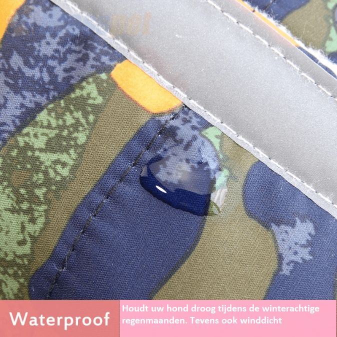 Waterproof jas voor honden. De ideale uitrusting voor de koude regenachtige wintermaanden. De hondenjas is tevens winddicht. De jas is gemaakt van polyester en katoen.